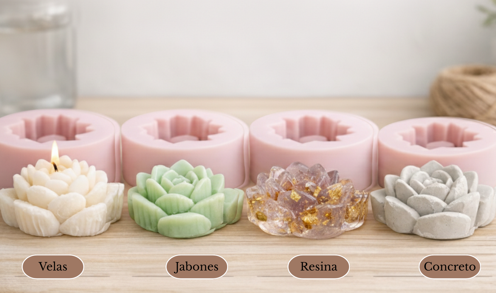 Moldes reutilizables versátiles para velas, jabones, resina y concreto decorativo.